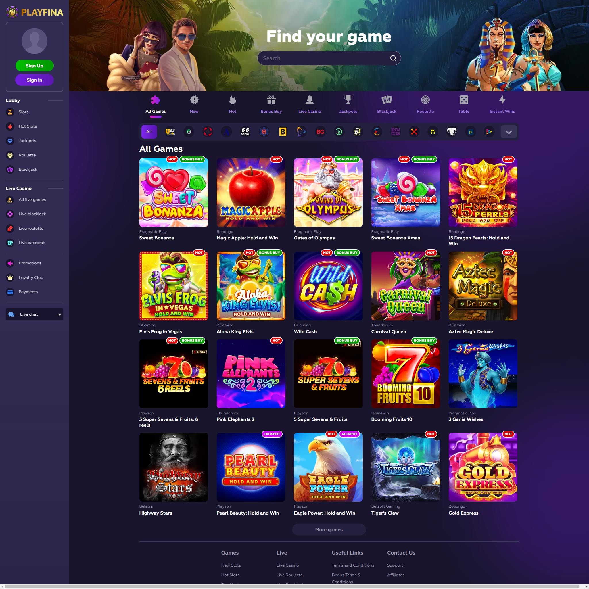 Register or Log In: Create an account or log in to your existing Playfina account.